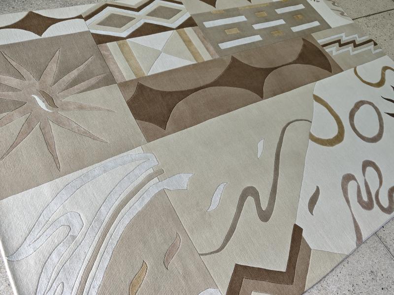 Особая техника плетения и тонкость шёлковой нити позволяют добиться высшей узелковой плотности (более 500 000-1000000 точек/м2), благодаря чему мастера могут создавать неповторимые, редкие дизайны с тонким рисунком. Шелковые ковры Cashmir от одноименного бренда поражают благородными сочетаниями красок и мягким сиянием нити.